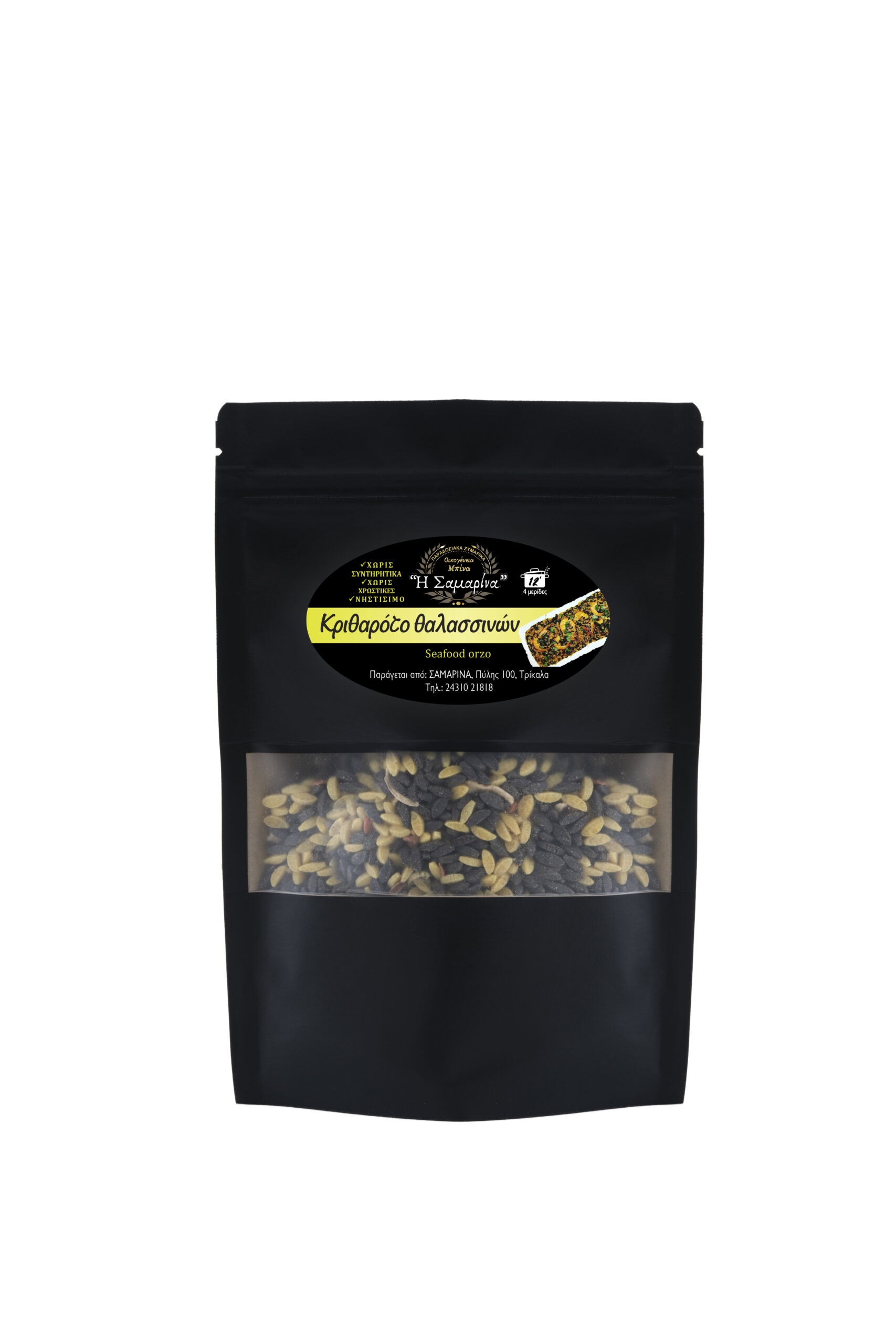 Αρωματικό, ιδιαίτερο και γεμάτο θαλασσινό χαρακτήρα, το κριθαρότο θαλασσινών είναι μια ξεχωριστή πρόταση εμπνευσμένη από τις αγαπημένες μεσογειακές γεύσεις. Παρασκευάζεται με κριθαράκι με μελάνι σουπιάς, κουρκουμά, επιλεγμένα αποξηραμένα λαχανικά και αρωματικά μπαχαρικά, δημιουργώντας μια πλούσια βάση γεμάτη χρώμα, άρωμα και γευστικό βάθος. Είναι έτοιμο για μαγείρεμα με θαλασσινά, προσφέροντας έναν εύκολο και απολαυστικό τρόπο να δημιουργήσετε ένα εντυπωσιακό πιάτο με νησιώτικο και gourmet χαρακτήρα. Ιδανικό για όσους αγαπούν τις θαλασσινές γεύσεις και θέλουν ένα πιάτο με έντονη προσωπικότητα και ξεχωριστό άρωμα.